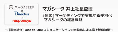 本セミナーでは、マガシーク株式会社 代表取締役社長の井上氏にマガシークのマーケティング戦略についてご講演いただくとともに、同社マーケティング部 炭竃氏から「Responsys Interact Marketing Cloud」によって実現したOne to One自動配信メールについても詳しくご紹介いただきます。