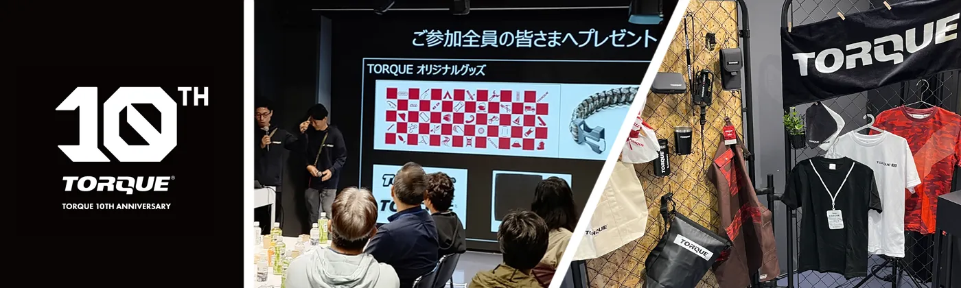 左:TORQUEの10周年記念ロゴ/右:2023年のTORQUEイベントの様子
