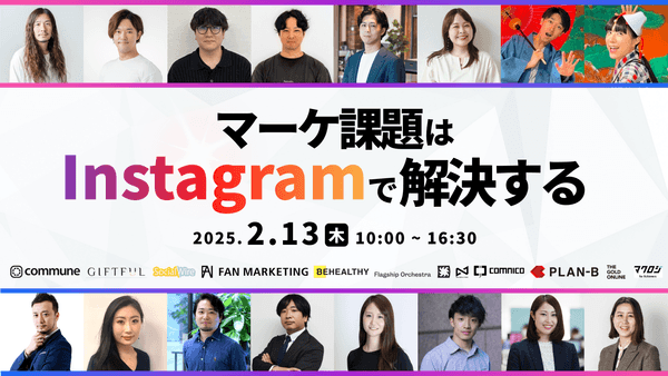 Instagramマーケティングの最前線で活躍するエキスパート10社が集結し、UGC戦略、KPI設計、リール動画活用、インフルエンサーマーケティング、ファンコミュニティ育成など、すぐに実践できるノウハウをお伝えします