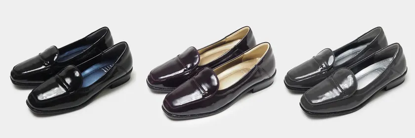 脱ぎ履きが楽で、きちんと感の出るバレエシューズやモカシン。普段履きからビジネスシーンまで汎用性が高いですが、足に負担がかかりやすいのが難点です。そこで当社では、素材や製法にこだわり、ソフトな履き心地で軽快な足運びができるローヒールの撥水カジュアルシューズを開発いたしました。