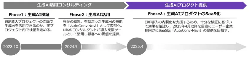 近年のERP市場ではFit to Standardという概念が浸透し始めているものの、実際のERP導入プロジェクトの現場では顧客要件を導入ベンダーがアドオン、カスタマイズ偏重により実現するケースが多く、結果として必要以上のERPコンサル、エンジニアリソースを抱えることになるため、ERP市場では慢性的に人財が不足している状況が続いております。NTSはこの状況の根本的な解決策として、ERP導入プロジェクトにおける生成AIの活用に着眼しました。
