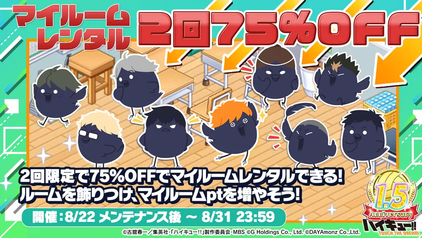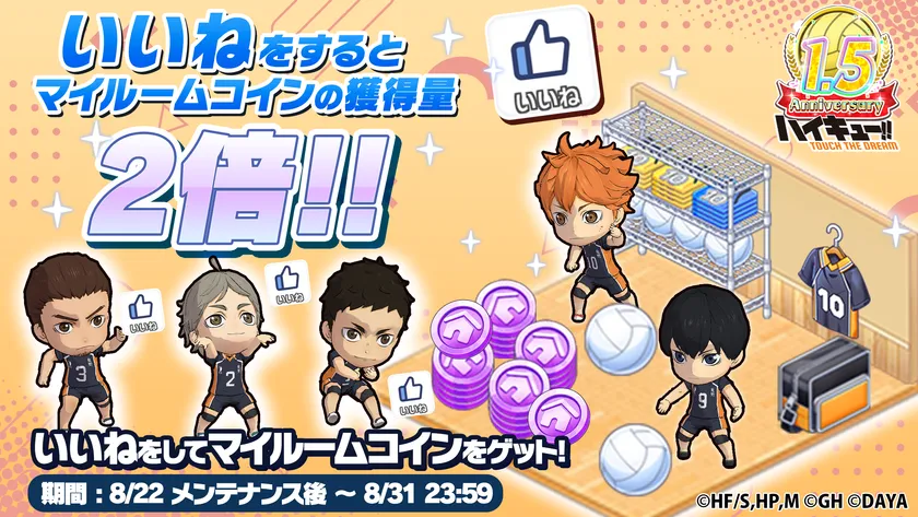 スマホゲーム『ハイキュー!! TOUCH THE DREAM』 1.5周年を記念して8月22日(木)から1.5周年キャンペーン開催 ~第3回「マネージャーの部屋」実施~