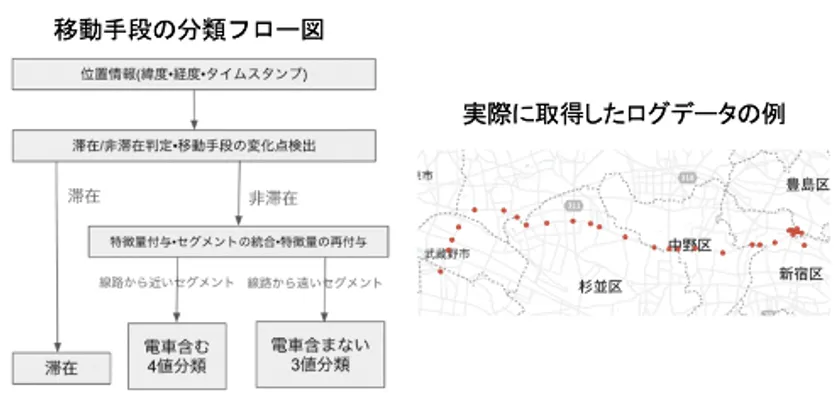 (図)移動手段の分類フロー図・実際に取得したログデータの例