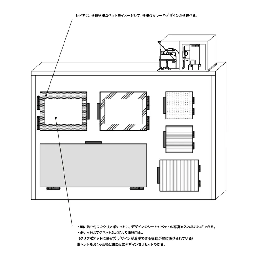 5. 冷蔵庫内に照明をつけており、ペットが暗い冷蔵庫に収められる印象を軽減する工夫をしています。
