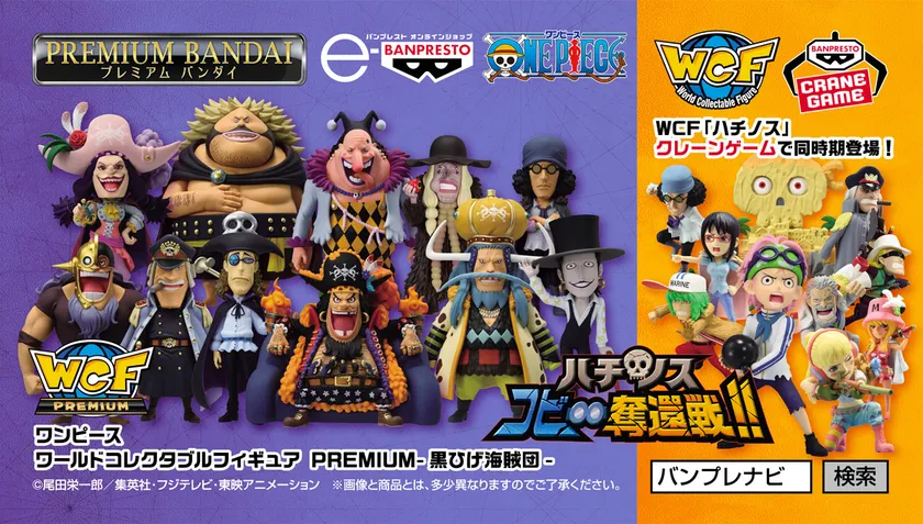 ハチノス、コビー奪還戦!! 現四皇【マーシャル・D・ティーチ】を提督に 10人の巨漢船長が船を率いる「黒ひげ海賊団」WCF、 フルコンプセットで予約開始! 同時期にクレーンゲームで登場するWCFハチノスをGETして ハチノス島でのコビー救出シーンを再現だ!