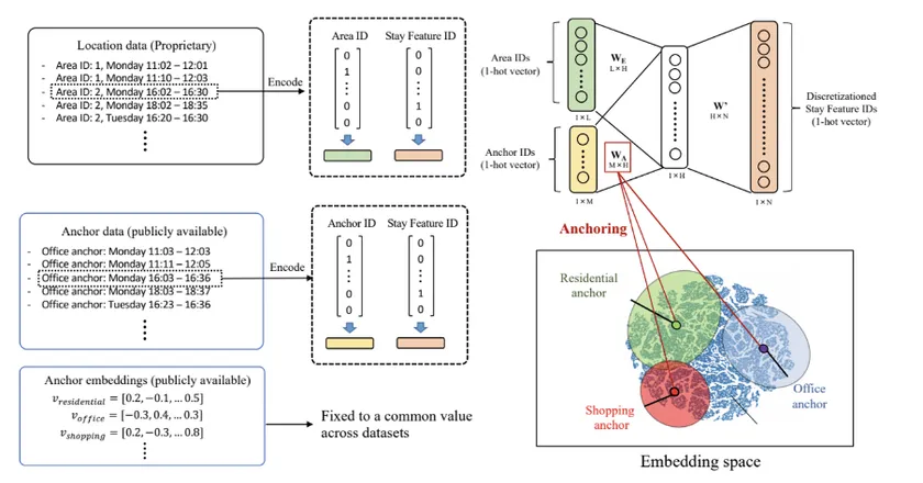 2021年にブログウォッチャーと名古屋大学が特許を出願した技術( https://www.blogwatcher.co.jp/new-s/nagoyadai-tokkyo/ )を用いた都市のエリア利用パターン分析は、市場分析、都市計画、交通インフラの開発、感染予測など、さまざまな分野で活用できます。しかし、都市間や異なる時期のエリア埋め込みデータを共通の空間で比較することは技術的に難しいという問題がありました。これを解決するために、アンカリング手法を開発し、都市間の比較を可能にしました。