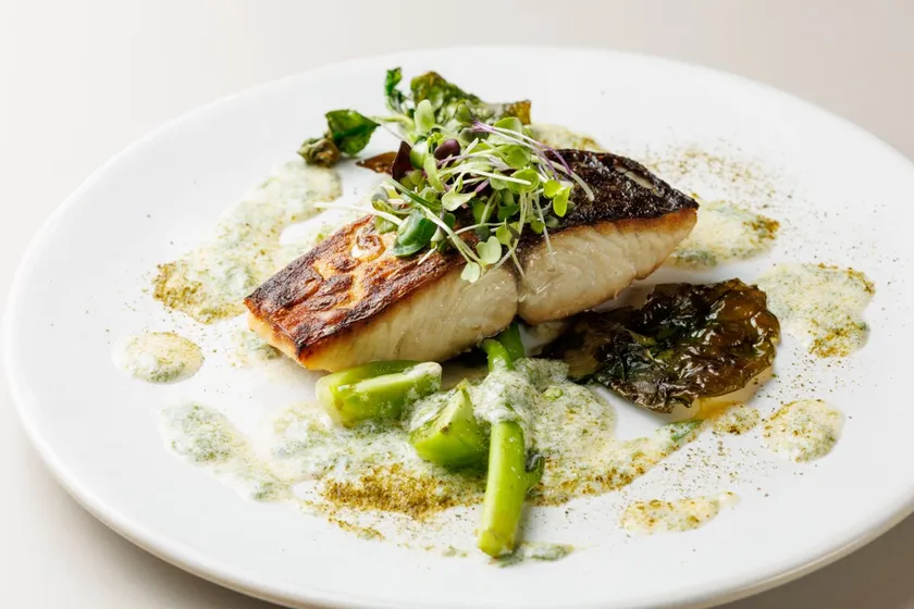 サワラのソテー 豆乳ブールブランとつるむらさき 2,600円(税込)