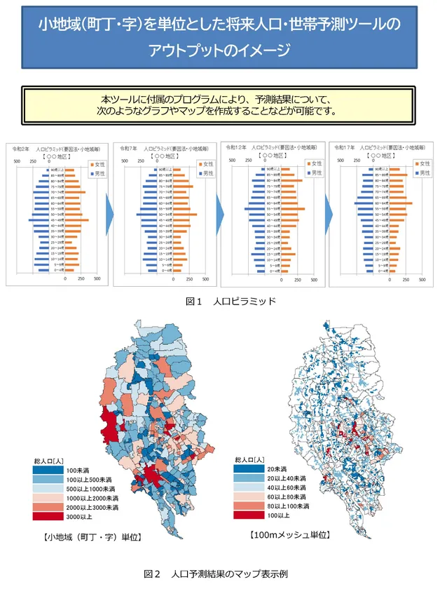 「小地域(町丁・字)を単位とした将来人口・世帯予測ツール」アウトプットイメージ