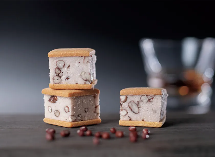 赤福が手がける五十鈴茶屋の商品「あずきバターサンド(3個入1,500円)」は、北海道産小豆と国産バターで仕上げたバタークリームを、三重県産「あやひかり」を使ったサブレではさみました。ラム酒の豊かな香りとあずきの食感をお楽しみください。