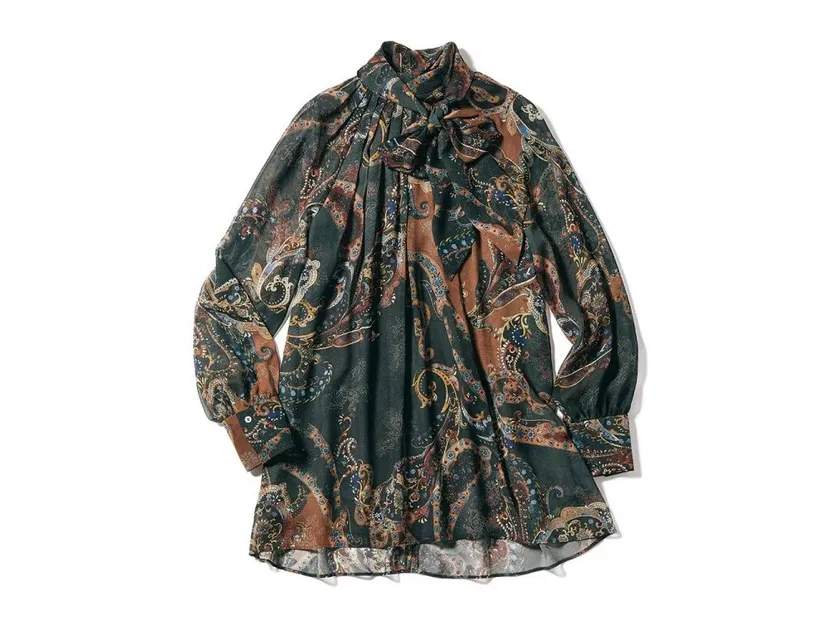 エリカペイズリー柄プリントボウタイブラウス