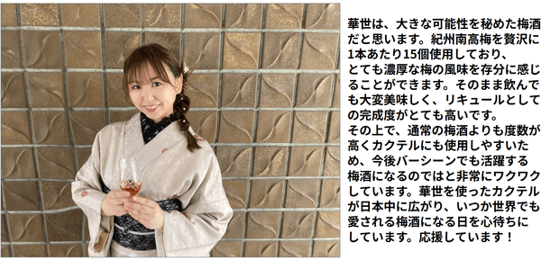 高級梅リキュール「華世 / Kaséi」は、「日常から、華ひらく」をコンセプトに、日本の伝統的な梅の風味を最大限に引き出しつつ、世界のプロフェッショナルが求める品質を両立させた商品です。