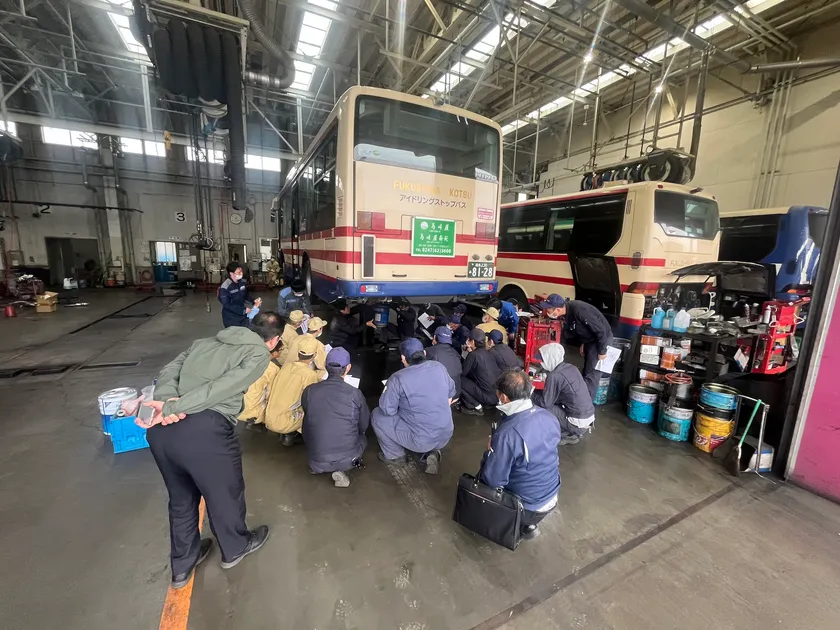 2023年8月に初めて、アリソンTモデルを搭載したジェイ・バス製中型路線バスを導入した福島交通株式会社、輸送安全部 次長 車両整備統括責任者の岡崎 一雄氏は、「県内外の他のバス事業者からアリソン製AT車のスムースな走行性能の高さやドライバーのストレス軽減といったメリットを耳にし、国内の大型路線バスに普及している搭載実績と合わせ、安心して導入することができました。一方、ATが故障した際の対応を心配していましたが、導入後には郡山市のアリソンサービスディーラーである三信精器工業とメンテナンスセミナーを共同開催することで、自社で行える定期的なメンテナンスへの理解が深まりました。不測の事態に備え、我々の近くにサービス拠点があることも安心材料となっています」と述べています。また、郡山支社 車両整備課 係長(船引営業所担当)の塚原 康裕氏は、「セミナーではATFの過不足が変速ショックの発生やブリーザーからの油漏れにつながることを理解できました。また実際に車両を使ってATFとフィルターを交換し、適量のATFを充填するためのレベルゲージによる「COLD」と「HOT」チェックの必要性と手順を改めて確認できました。」と述べています。事業者に対するメンテナンスセミナーを通じて、アリソン製品への理解を促進し、長期間にわたってご愛用いただけることで、サステイナブルな社会構築の一助になるとともに、マニュアル車では必要なクラッチ交換が不要となり、長期間にわたるトータルのメンテナンスコストの削減を図ることにもつながっています。