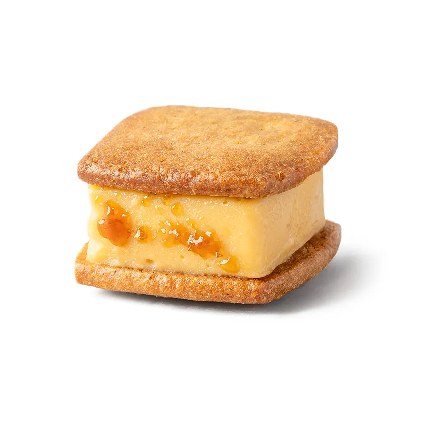 皮ごと蒸した栗かぼちゃのクリームが織りなす、濃厚で豊かな味わいのバターサンド。ほんのりと甘みを感じるピスタチオがアクセントとなり、上品でまろやかな一口が、特別な時間を演出します。心まで満たされる贅沢なひとときをお楽しみください。