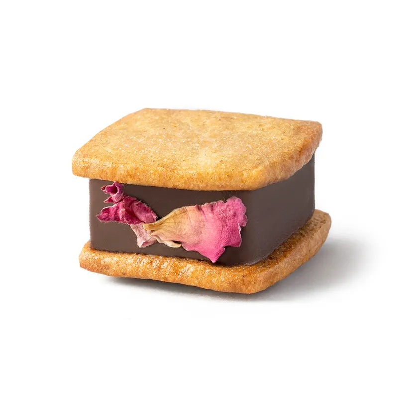 しっかりとしたコクを持つプーアル茶とビターチョコが絶妙に調和したバターサンド。バラの高貴な香りがふんわりと包み込み、一口ごとに広がる豊かな味わいが心を満たします。