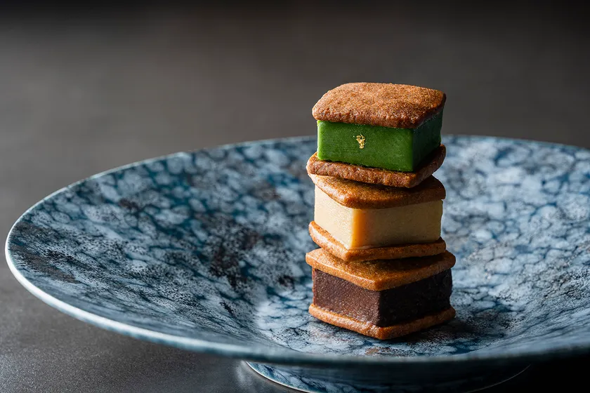 抹茶の豊かな香りと深い味わいをそのままに再現した、和の趣が漂うバターサンド。上品にあしらった金箔が、華やかで特別なひとときを演出します。