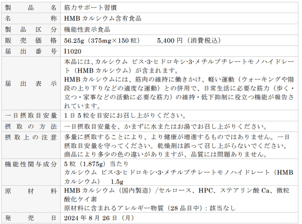 加齢とともに、筋力の低下を感じることが多くなりがちですが、積極的な対処もなかなかできない生活者の方も多くいらっしゃいます。そのような中高年世代を応援すべく、このたび、日常生活で毎日の軽い運動とともに日常生活に必要な筋力の維持・低下抑制に役立つことが報告されている成分HMBカルシウム※を配合した機能性表示食品「筋力サポート習慣」を発売いたします。