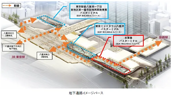 (2)「東京ミッドタウン八重洲」「八重洲地下街」「京橋エドグラン」と地下通路で接続し、東京駅前・京橋エリアの回遊性が向上。