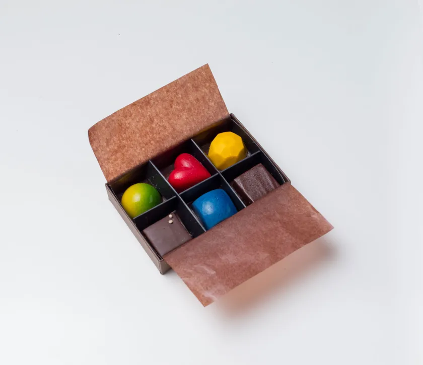 地元・岩手県西和賀町のエゴマを使ったクリスピーチョコや、秋田県男鹿市の特産塩を使用した塩キャラメル味を含む、素材の輝きを表現した6種類のボンボンショコラです。フルーツの個性に合わせて、南米産の良質なカカオを厳選しました。保存料不使用の、さわやかでフレッシュなくちどけをご堪能いただけます。