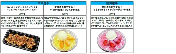 3.対象商品:監督・選手コラボグルメ(一例)