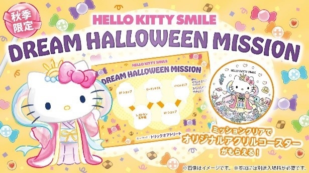 内容: HELLO KITTY SMILEの5つのエリア内にいるスタッフに合言葉「トリックオアトリート」をお伝えいただくと限定ステッカーをお渡しします。全5種類の限定ステッカーを全て集めると、本イベント限定デザインのアクリルコースターをプレゼント ※無くなり次第終了