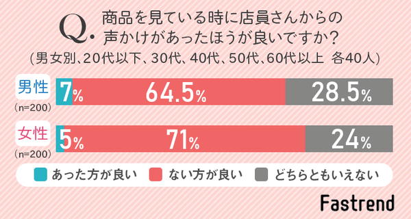 女性の71%が、店員からの声かけは「ない方が良い」