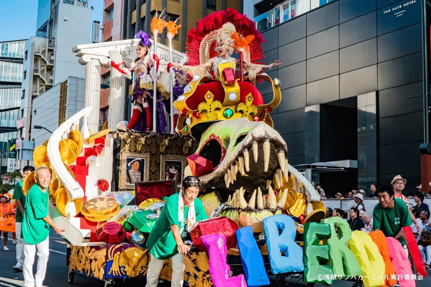 浅草の夏を締めくくる「浅草サンバカーニバル パレードコンテスト」は、昭和56年の開始以来賑やかなことが大好きな浅草の皆さんに支えられて発展し、近年は毎年50万人のお客様で賑わう一大イベントに成長いたしました。