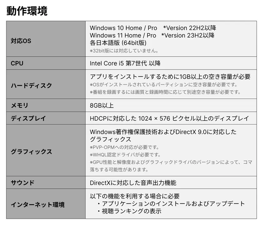 ・クラウドストレージへの録画に対応し、Xit wirelessでテレビ番組のリモート視聴が可能。(iOS/iPad OS版のみピクチャ・イン・ピクチャ対応)