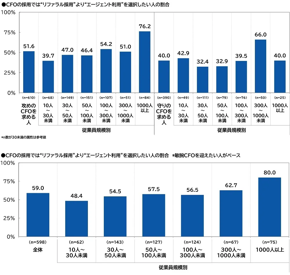 ●「CFOの採用では“リファラル採用”より“エージェント利用”を選択したい」47%、従業員規模1,000人以上では68%