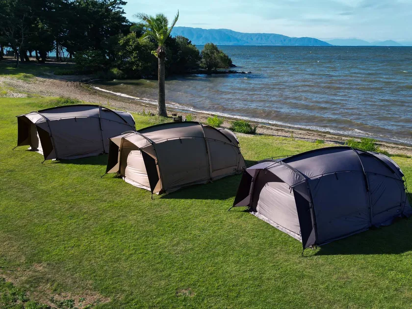 テント内では大人が立って歩ける天井高。3~4人で快適に過ごしやすい“ちょうど良い”、2人では広々贅沢空間を楽しめます。