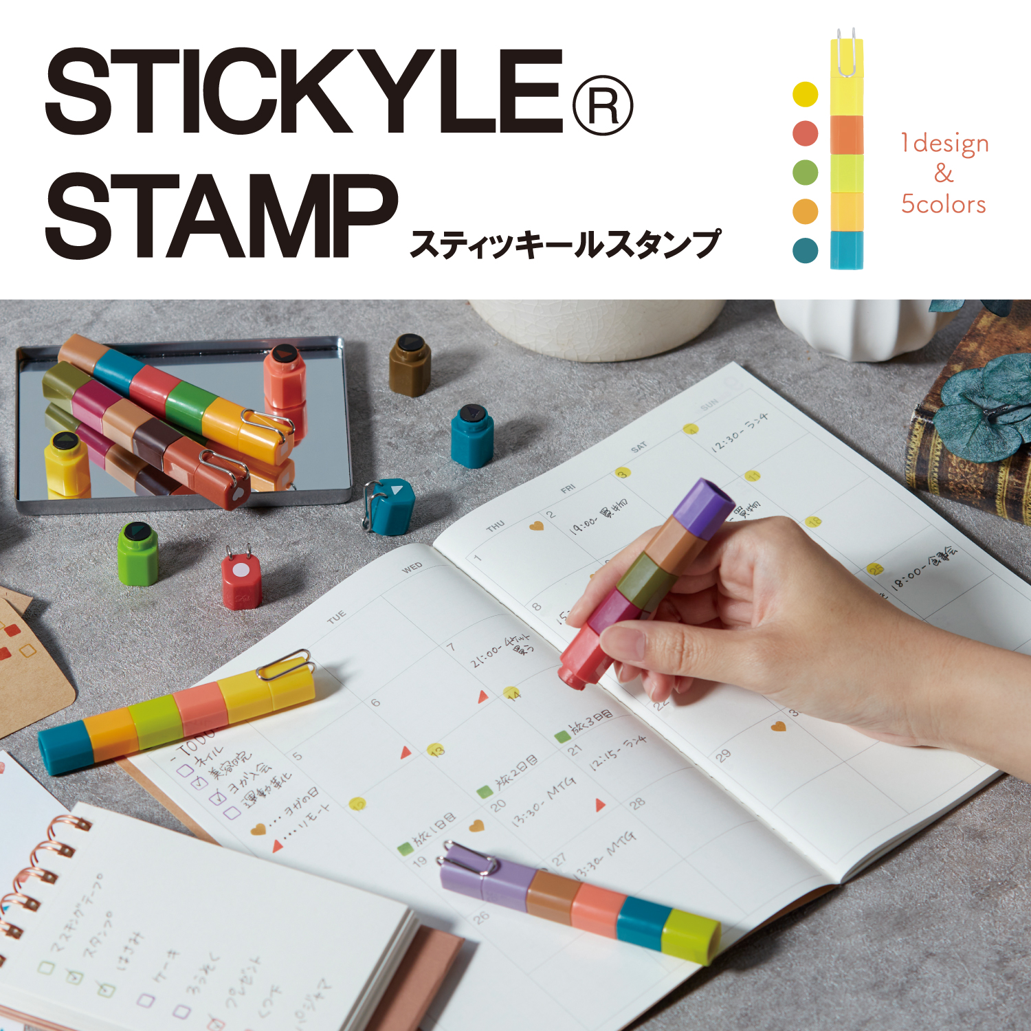 スティック型の携帯文具「スティッキール」シリーズより 5色のスタンプが1本になった『スティッキールスタンプ』 9月上旬より発売