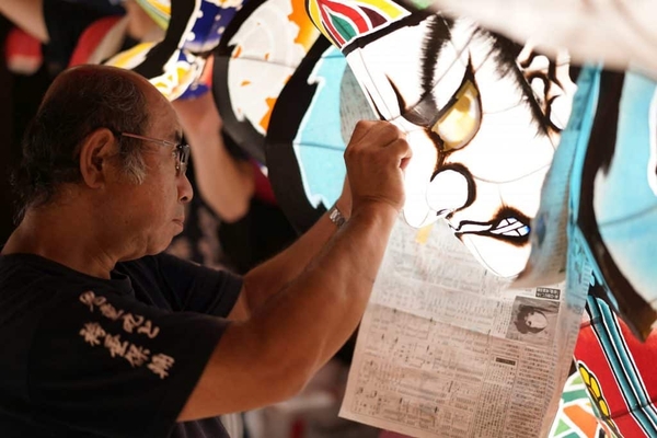 青森の祭りで運行される、色鮮やかで圧倒的なスケールを誇るねぶた山車を間近に観賞できるのは、ショー会場「みちのく祭りや」の特徴の一つです。制作に携わるのは、北村(きたむら)麻子(あさこ)氏、竹浪(たけなみ)比呂央(ひろお)氏、手塚(てづか)茂樹(しげき)氏、内山(うちやま)龍(りゅう)星(せい)氏、立田(たつた)龍(りゅう)宝(ほう)氏、北村(きたむら)春(しゅん)一(いち)氏の6人のねぶた師です。ショーで運行される大小のねぶたはもちろん、入口や通路にも立体ねぶたや白ねぶた、木製ねぶたの切り絵が観客を迎えます。また、祭りへの情熱を表す、ねぶたの技法でできた「火の玉」も演出の一環として登場し、祭りの神髄を感じられるさまざまな作品が一堂に会し、ショーをより一層盛り上げます。