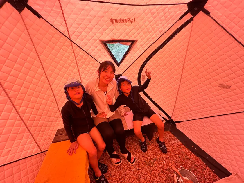 渓流サウナ実施日:9月15日(日)、9月22日(日)、10月13日(日)、11月3日(日)、いずれも14:30~16:30