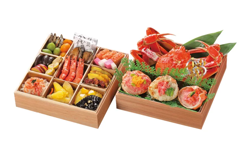 品質を保証するブランドタグ付きの「松葉蟹」をはじめ、山陰の食材をふんだんに使用したおせち。