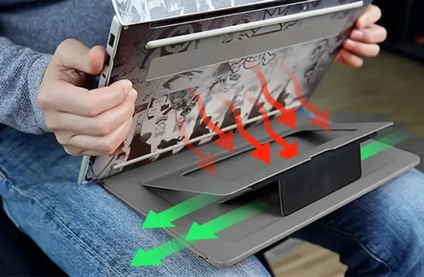 PCを置く面は真ん中が空いていて、換気に配慮した設計で優れた冷却効果を実現しています。長時間の使用でも快適に作業が可能です。