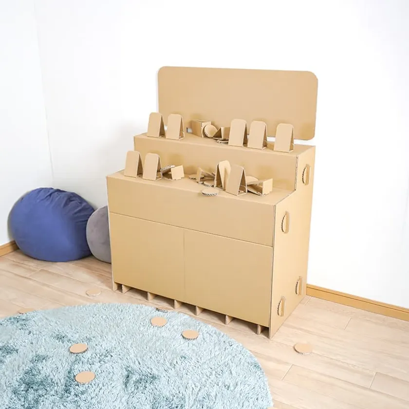 (2) 一般的な段ボールを使用。軽くて柔らかく怪我をしにくい