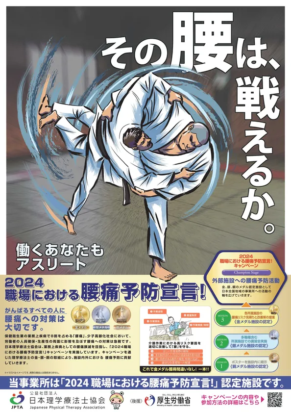 公益社団法人日本理学療法士協会(会長:斉藤 秀之)は、厚生労働省の後援のもと、理学療法士の専門性を活かし会員が自らの職場等で腰痛予防に取り組む事業「2024職場における腰痛予防宣言!」を、2024年9月2日(月)より実施します。