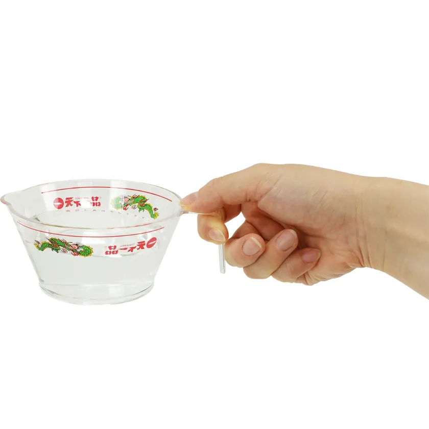 家麺に使う水の量がひと目でわかる!どんぶり型の計量カップ。