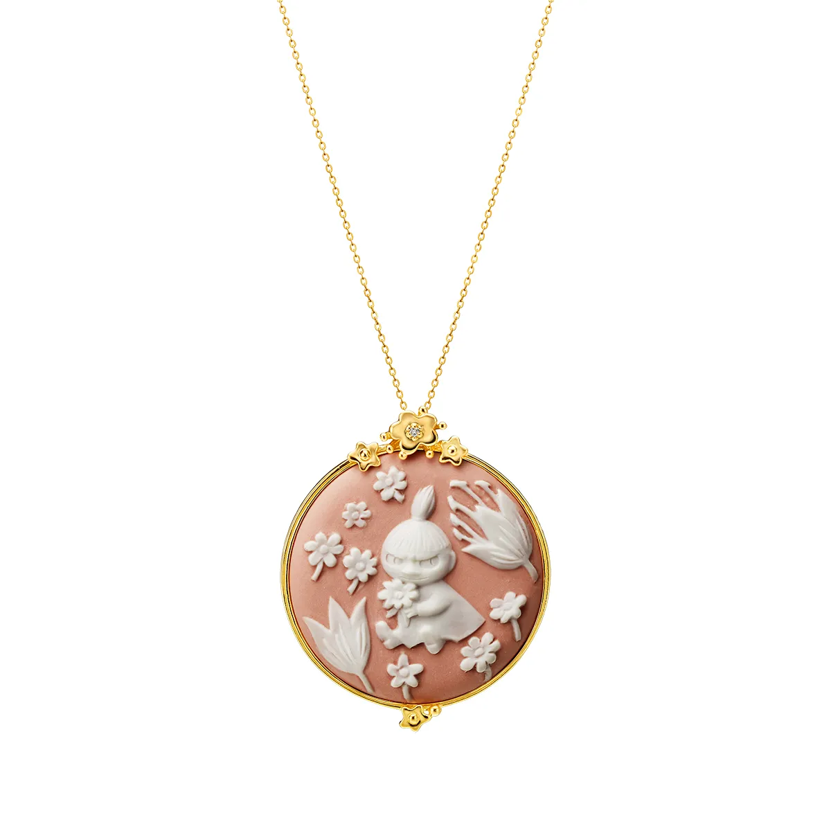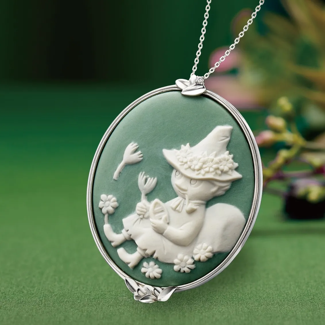 ●材質:ペンダントトップ=磁器カメオ フレーム・バチカン・チェーン=ダイヤモンド1石(約0.01ct)、リトルミイ/24金仕上げスターリング・シルバー(925銀)、スナフキン/プラチナ仕上げスターリング・シルバー(925銀)