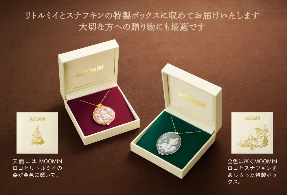 磁器カメオペンダント<しあわせのムーミン谷> リトルミイとスナフキンの2種類を新発売!