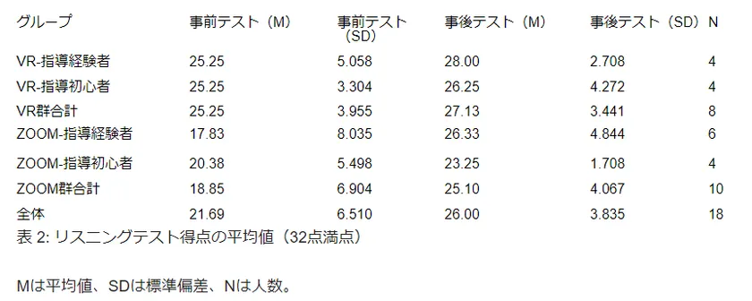 (1) 日本の小学6年生のリスニング力発達を手助けするうえで、低没入型VRの学習環境は非没入型のZoom学習環境と比較してどのように違うか?