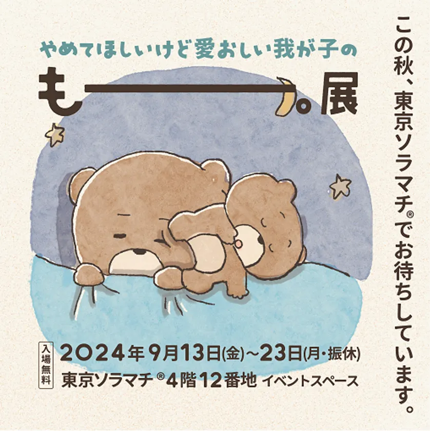 「つむぱぱ」のエージェントである株式会社ソニー・クリエイティブプロダクツ(本社:東京都港区、代表取締役社長:大竹 健)は、東京スカイツリータウン(R)内にある商業施設「東京ソラマチ(R)」4F12番地のイベントスペースにて、2024年9月13日(金)~9月23日(月・振休)まで、SNSの総フォロワーが170万人を超え、パパ・ママ層に大人気のクリエイター「つむぱぱ」による『もー。展』を開催いたします。