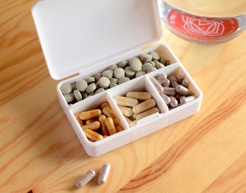 ●仕切り付きで、複数のサプリメントや薬を区別して収納できます。
