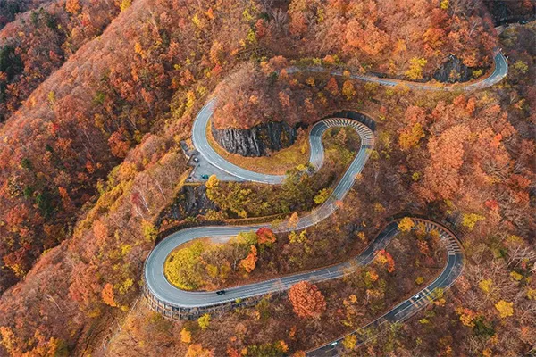 日光市街と中禅寺湖・奥日光を結ぶいろは坂は、標高差が440m、急カーブが48ヶ所もあります。標高によって色づき方が異なる紅葉は絵画のように美しく、展望台からの眺めも抜群。圧巻の景観を楽しめるでしょう。