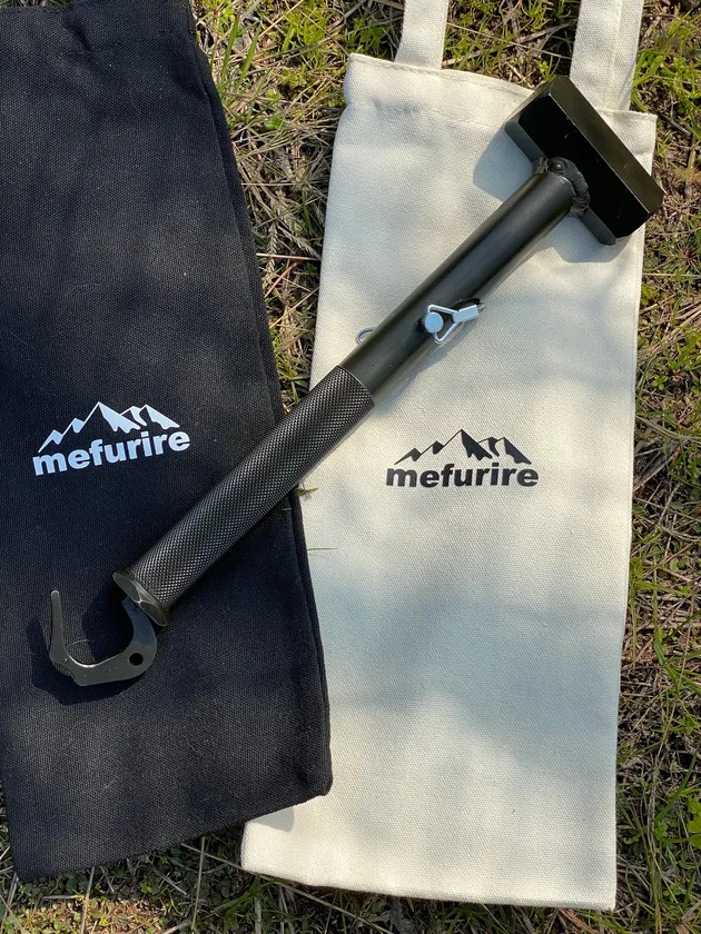 ペグを簡単に抜けるメフリレハンマーを CAMPFIREにて9/30まで販売中! お洒落な携帯用トートバッグも付属