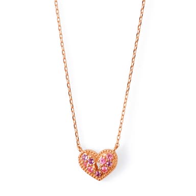 徴したバースデー記念商品。K10PG を使った高級感のあるハートに、パープルとピンクの石を敷き詰め