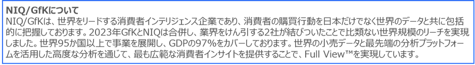 NIQ/GfK Japanは、世界50か国以上の小売りチェーンの2024年最新の情報を効率的に把握できるレポート【NIQショッパートレンド レポート】を8月29日に発表した。本レポートは特にアジア・パシフィック地域へ進出する、メーカーや小売りチェーン等の日本企業が食品を始めとするFMCGの海外市場について理解を深めることができる。対象となるチャネルには、スーパーマーケット、コンビニ、ドラッグストアにとどまらず、オンラインやデータ収集が難しいトラディショナルトレード(伝統的小規模小売店)も含まれているのが特徴である。