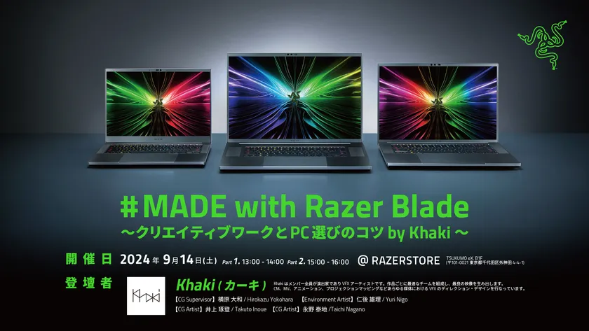 <Razer> VFXアーティスト集団Khakiと共に送る クリエイター向け特別イベント 「#MADE with Razer Blade」を9/14(土)に開催