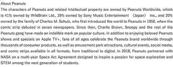 (c) 2024 Peanuts Worldwide LLC( 短縮形 (c) 2024 Peanuts )