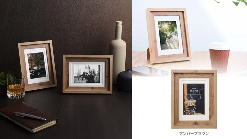 重厚で存在感のある木製フレームが印象的な「フォトフレーム Chaleur(シャルール)」。