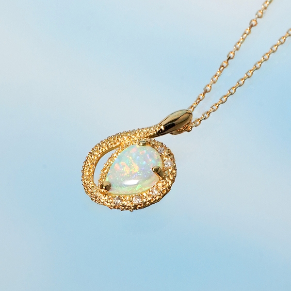 Fire Eye Opal Pendant - K18YG / Opal, Diamond